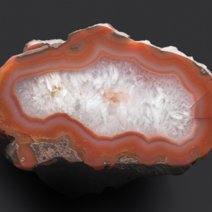 Agates, including Royal Aztec Agate, form when silica-rich water seeps into the cavities of volcanic rocks. Over time, as the water evaporates, the dissolved minerals crystalize, forming layers that give agate its characteristic banded appearance. Each layer may be composed of different minerals, which result in the variation in color and translucency.