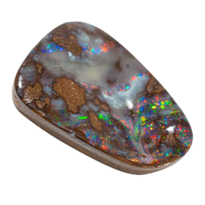 The gemstone has a distinct iridescent or rainbow-like appearance due to interference patterns in the layers of the stone. These layers trap light, producing the “fire” effect with colors such as red, orange, yellow, and green. This phenomenon is similar to the play of colors in opal, though fire agate’s color play is more structured and localized.